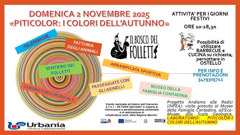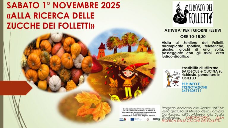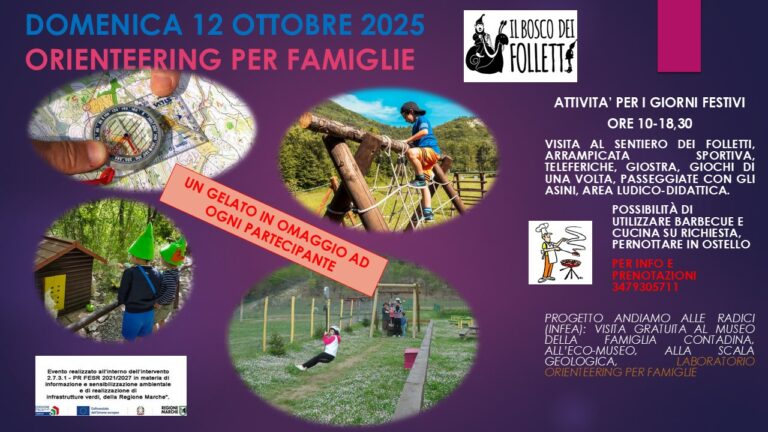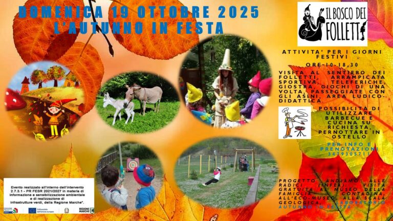 Domenica 21 settembre 2025 giornata speciale al Bosco dei Folletti di Urbania: Laboratorio musicale, Spettacolo di Burattini, Arrampicata sportiva, Passeggiata nel Sentiero dei Folletti, Passeggiate